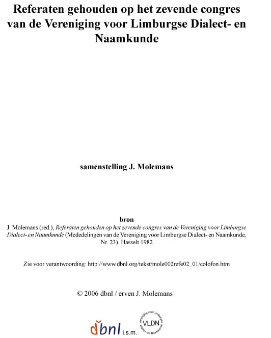 Referaten gehouden op het zevende congres van de Vereniging voor Limburgse Dialect- en Naamkunde. Het land van Vogelzang, de nederzettingsnamen in het land van Vogelzang, gemeente, gehucht, heerdgang/heer(d)wagen. Vooral pagina 12, 13 en 14 belangen Zonhoven en de Zonderik aan.
